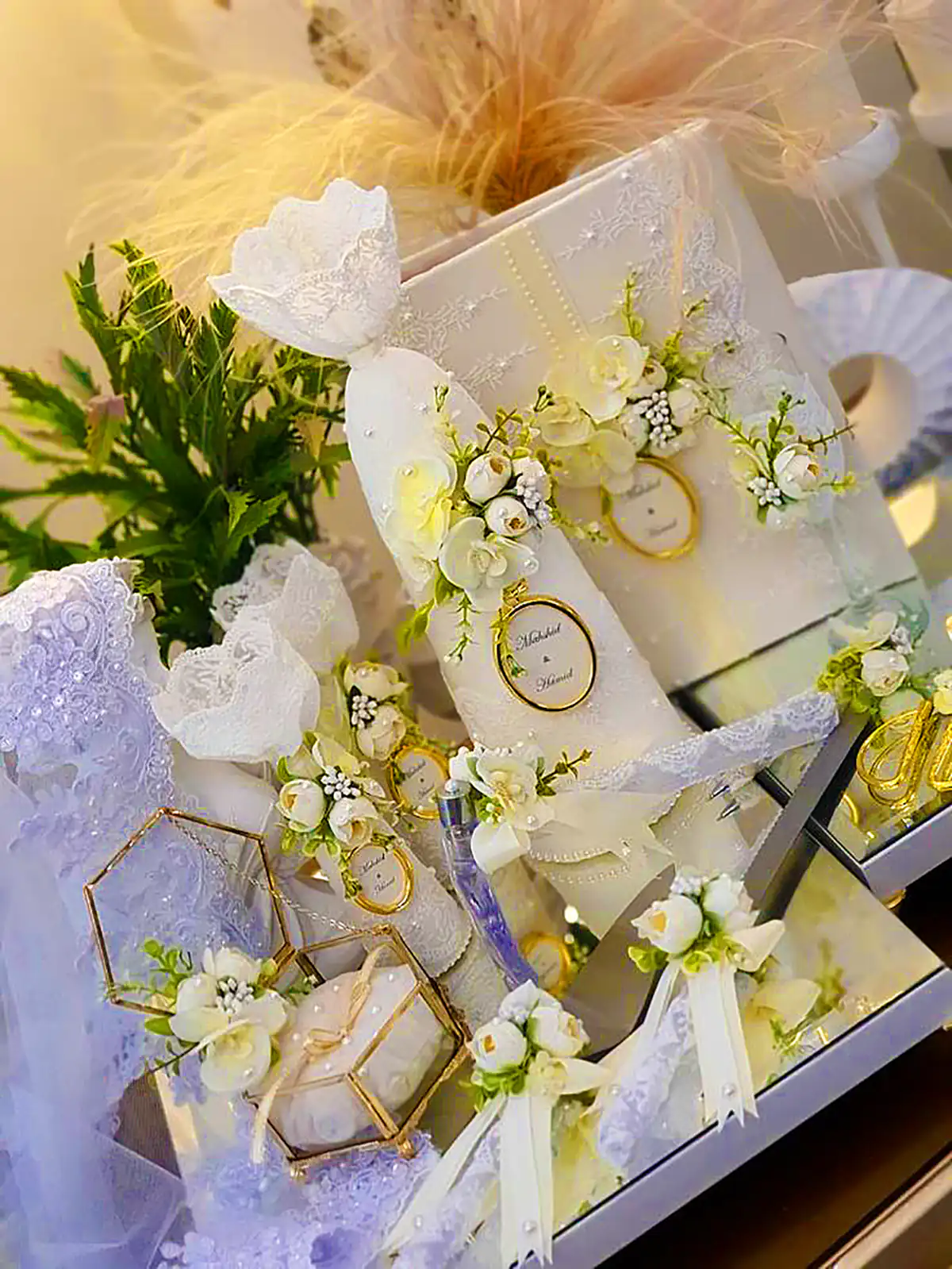 گل ارایی و دیزاین مجالس بله برون ،عروسی ،تالار ، ماشین عروس.دسته گل عروس.باکس و جام خواستگاری و نامزدی،تاج گل ترحیم،بادکنک آرایی و تم تولد .اجرا در لوکیشن با هماهنگی یک هفته.قیمتها متغیر می باشد