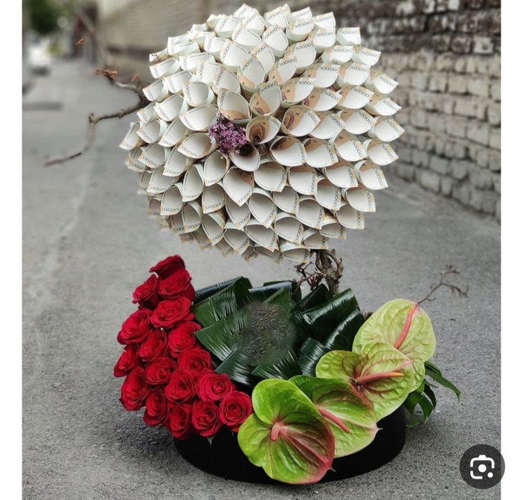 انواع تزیینات پول برای جشن ها .به صورت باکس گل .دسته گل کوچک وبزرگ،. تک شاخه برای شاباش ، باکس تولد